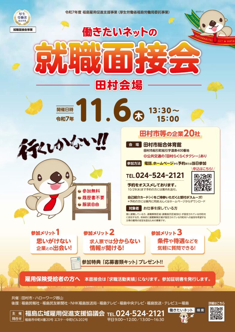 「働きたいネットの就職面接会(田村会場)」出展します!